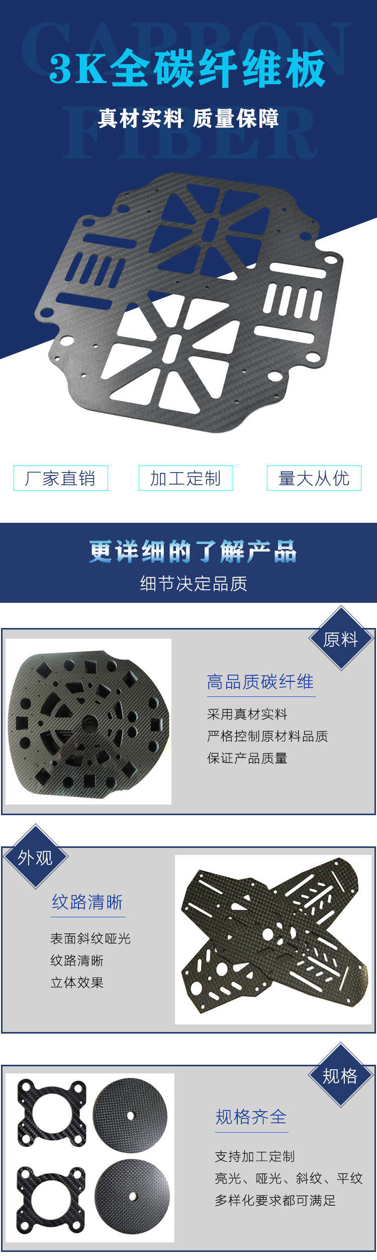碳纤维板精雕加工 CNC加工无人机碳纤维配件